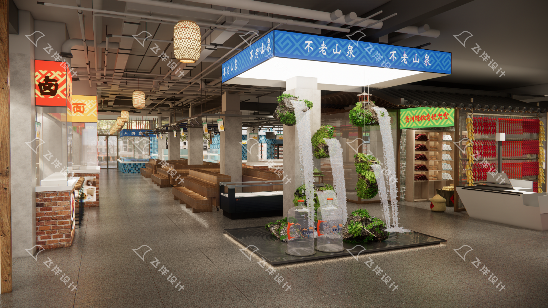 (黔山市集农贸市场农贸区山泉水品牌店设计方案)