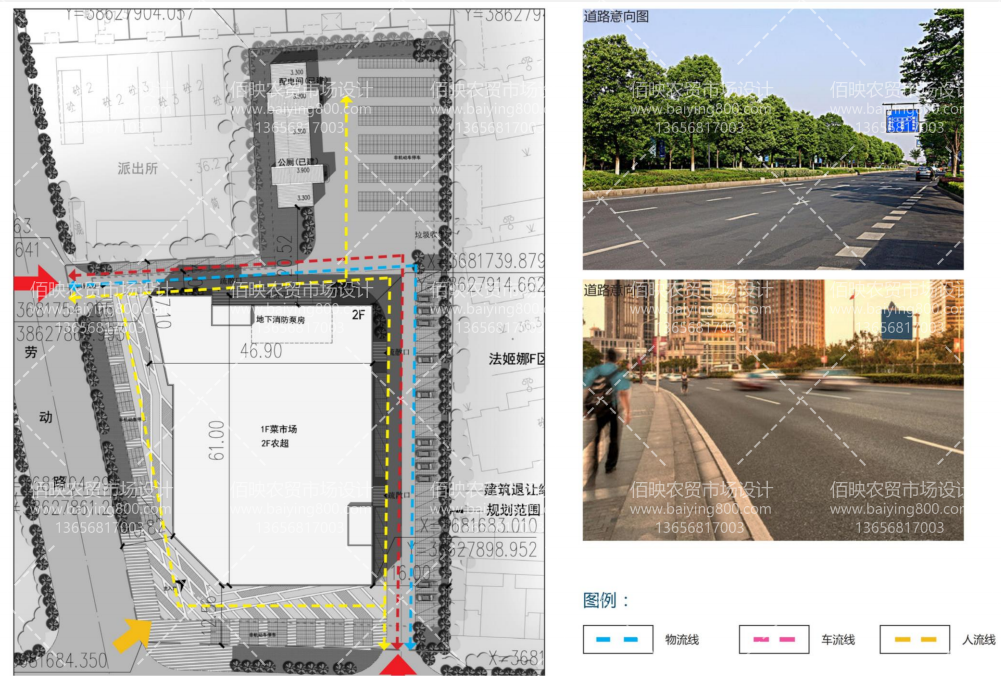 (胜利东路市场动线,实行物流、车流、客流三者相互独立的设计原则)