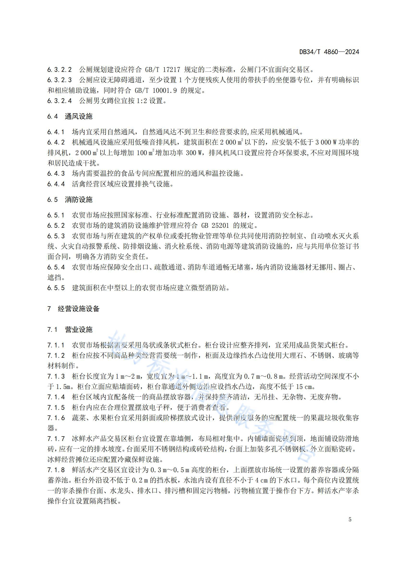 《农贸市场建设规范》(DB34/T4860-2024),作为安徽省地方标准,自2024年8月30日起正式施行。此标准直击农贸市场建设中标准模糊、建设无序等痛点,详尽规定了市场的等级划分、位置选择、设计构造、基础设施及经营设备配置等关键要素,主要面向城市区域内农贸市场的新建、改造与扩建项目,同时也为乡镇及街道农贸市场提供了可参照的蓝本。