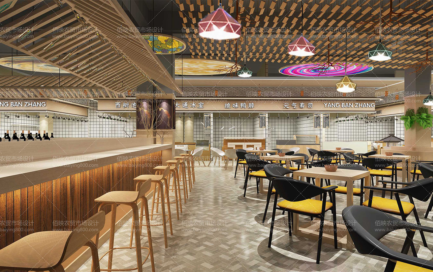 打造高颜值场景,塑造视觉吸引力。年轻人热衷拍照打卡分享生活,网红农贸市场设计可采用工业风、ins 风等潮流元素,对市场整体外观、摊位、通道进行重新规划与装饰。例如,用彩色涂鸦墙替代单调墙面,为蔬菜、水果摊位定制造型独特的灯光装置,营造出明亮且富有艺术感的氛围。同时,设置创意拍照打卡点,如巨型蔬菜水果模型、艺术装置,吸引年轻人主动拍照传播。