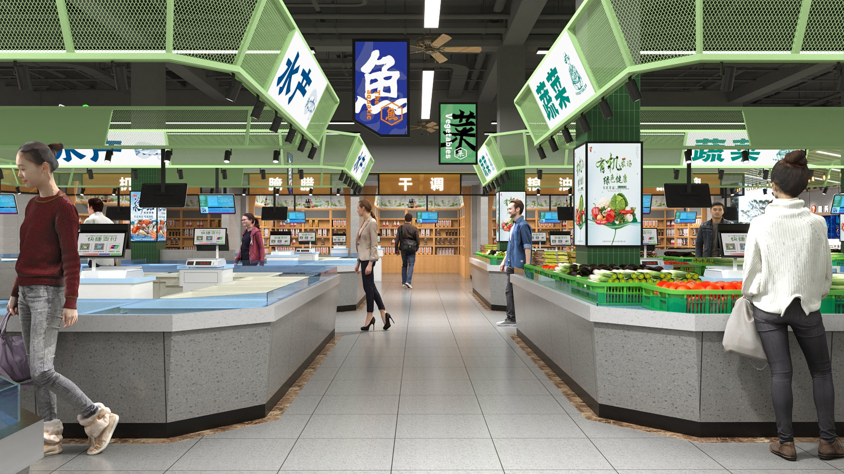 农贸市场设计效果图一、靠颜值改变第一印象,让逛市场成为值得分享的事