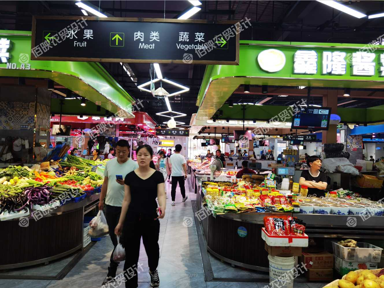 本次提升改造设计,我们对原有的市场摊位全部进行拆除,恢复毛坯状态,结合最新的市场设计、经营理念,重新进行合理化布局,并对顶部、吊眉、外立面等进行重新设计,让洞泾市场焕然一新。